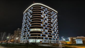 Разработка концепции началась нашей командой три года назад. Сегодня все работы по монтажу освещения завершены, и здание получило продуманное световое оформление, которое улучшает его видимость и делает объект более выразительным в вечернее время.