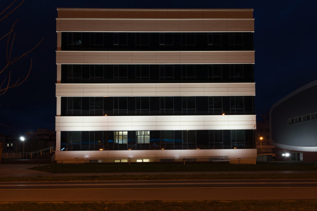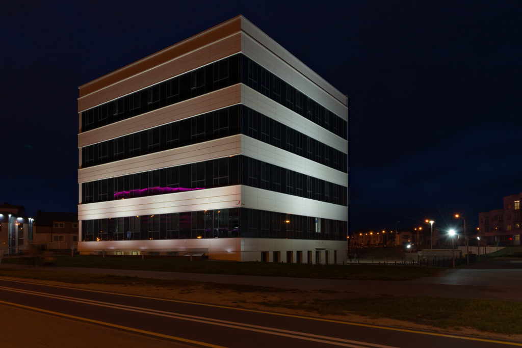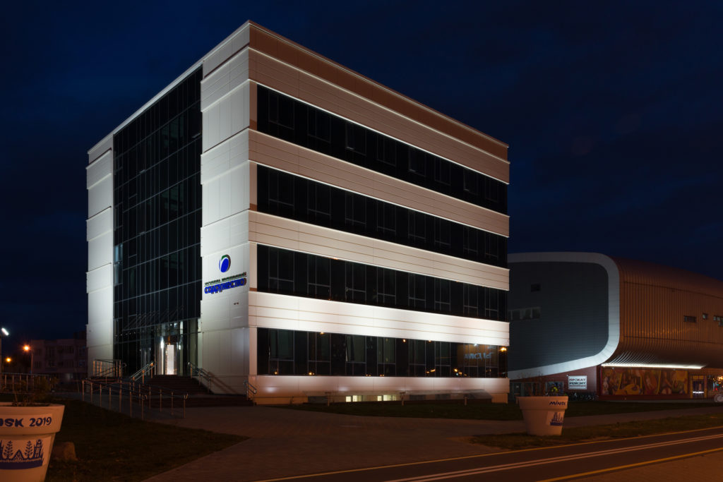 Нашей компанией выполнено архитектурное освещение штаб-квартиры группы компаний «Содружество». Для подсветки фасадов были использованы мощные светодиодные прожектора с узкой оптикой.